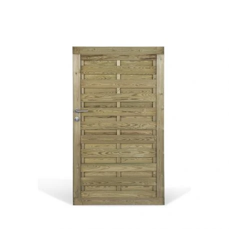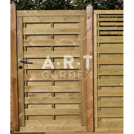 Le portillon Horizon est sobre et élégant tout en étant très solide grâce à une structure de forte section. Réalisé avec du Pin Rouge du Nord, le modèle Horizon est assorti au panneau brise vue Horizon et Horizon Plus. Le portillon Horizon a subit le traitement par imprégnation en autoclave pour renforcer la résistance du bois face aux éléments, ainsi votre palissade gardera sa jolie couleur de bois vert sur le long terme.